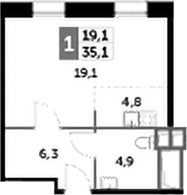 Студия № 9, 35.10 м2 без отделки 2 эт.