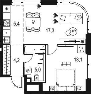 2-комнатная квартира № 33, 45.00 м2 без отделки 10 эт.