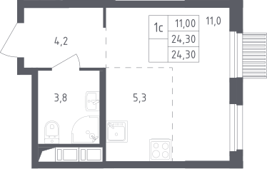Студия № 456, 24.30 м2 с отделкой 2 эт.