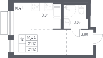 Студия № 20, 21.12 м2 с отделкой 3 эт.