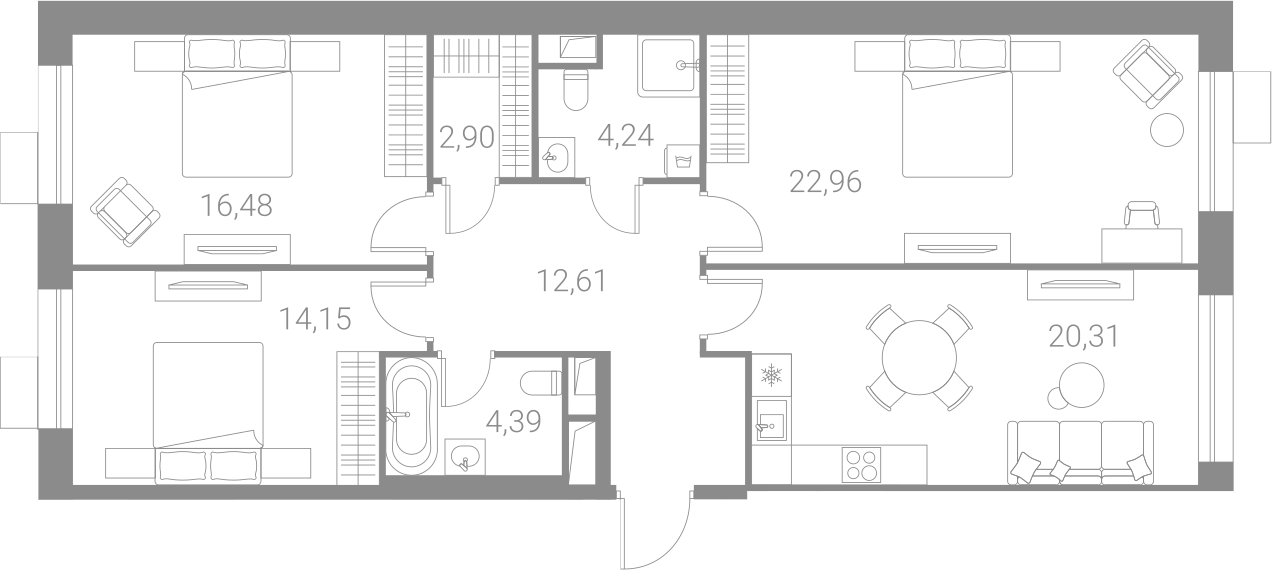4-комнатная квартира № 60, 98.04 м2 без отделки 12 эт.