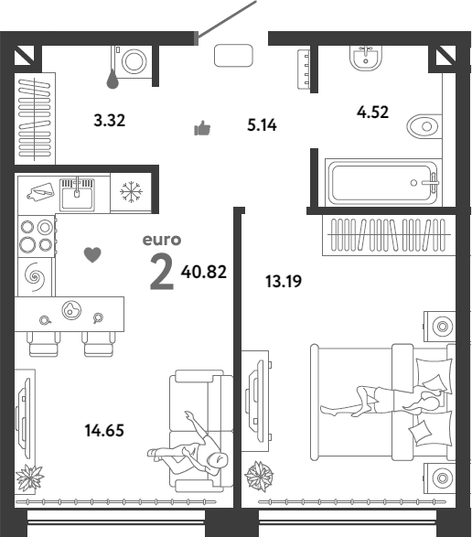 2-комнатная квартира № 23, 40.82 м2 без отделки 4 эт.