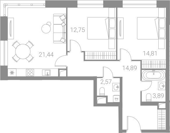 3-комнатная квартира № 10, 70.35 м2 с отделкой 2 эт.