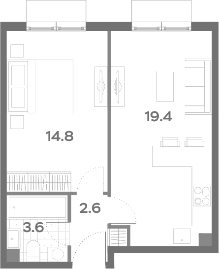 2-комнатная квартира № 22, 40.40 м2 без отделки 5 эт.