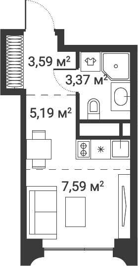 Студия № 62, 19.74 м2 с отделкой 14 эт.
