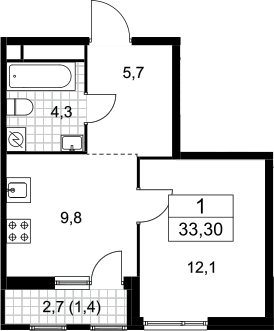 1-комнатная квартира № 965, 31.90 м2 без отделки 6 эт.