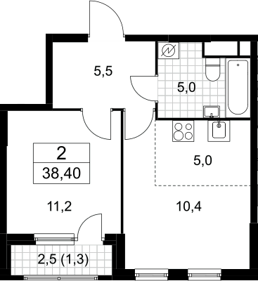 2-комнатная квартира № 855, 37.10 м2 без отделки 14 эт.