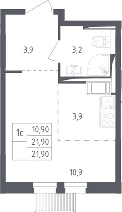 Студия № 467, 21.90 м2 с отделкой 8 эт.