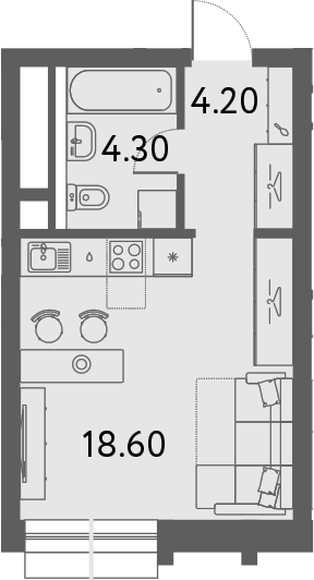 Студия № 7, 27.10 м2 без отделки 2 эт.