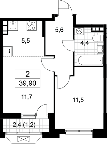 2-комнатная квартира № 450, 38.70 м2 без отделки 4 эт.