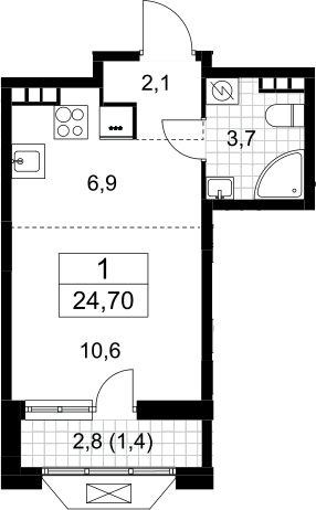 Студия № 544, 23.30 м2 без отделки 9 эт.