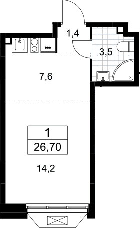 Студия № 549, 26.70 м2 без отделки 2 эт.