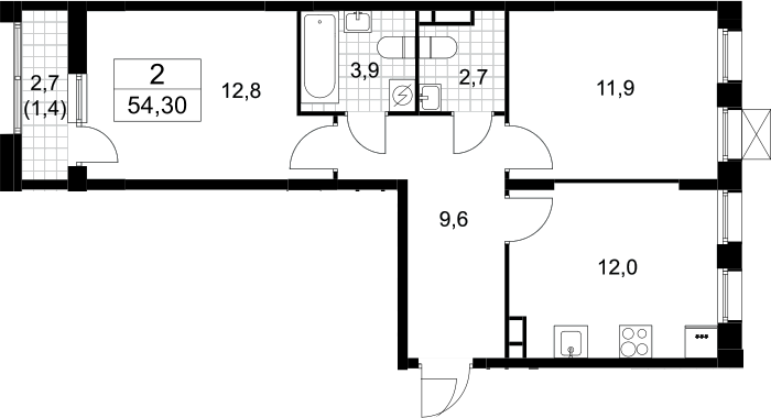 2-комнатная квартира № 294, 52.90 м2 с отделкой 8 эт.