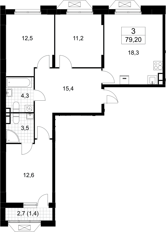 3-комнатная квартира № 335, 77.80 м2 с отделкой 8 эт.
