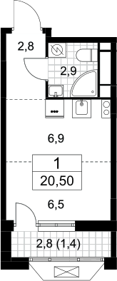 Студия № 238, 19.10 м2 с отделкой 14 эт.