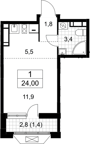 Студия № 494, 22.60 м2 без отделки 13 эт.