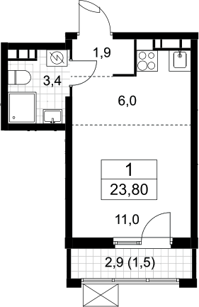 Студия № 521, 22.30 м2 с отделкой 7 эт.