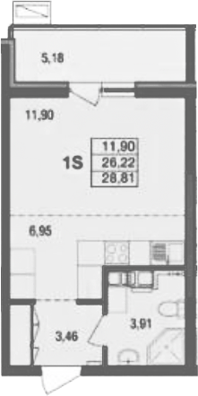Студия № 385, 26.22 м2 без отделки 8 эт.