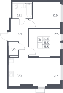 3-комнатная квартира № 360, 55.72 м2 с отделкой 8 эт.