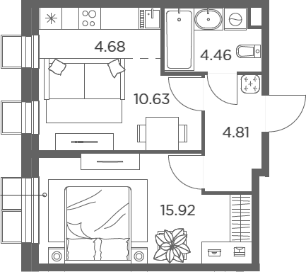 2-комнатная квартира № 471, 40.50 м2 без отделки 3 эт.
