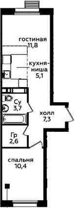 2-комнатная квартира № 1127, 40.90 м2 с отделкой 3 эт.