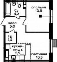 2-комнатная квартира № 944, 38.20 м2 с отделкой 2 эт.