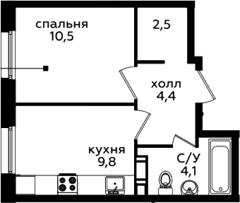 1-комнатная квартира № 18, 31.30 м2 без отделки 4 эт.