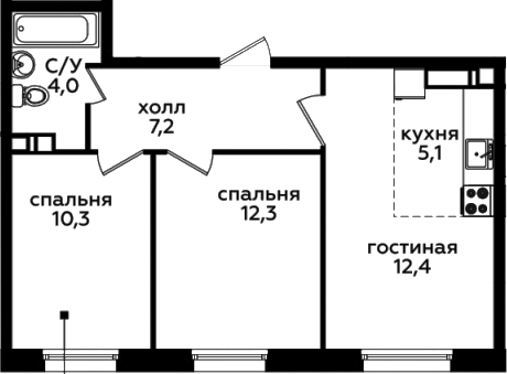 3-комнатная квартира № 336, 51.30 м2 с отделкой 14 эт.