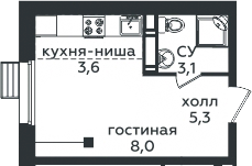 Студия № 998, 20.00 м2 без отделки 14 эт.