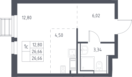 Студия № 141, 26.66 м2 с отделкой 14 эт.