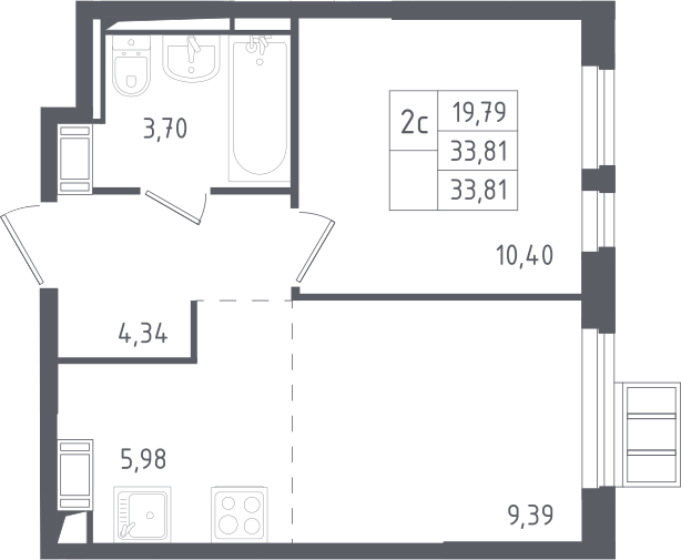 2-комнатная квартира № 233, 33.81 м2 с отделкой 12 эт.