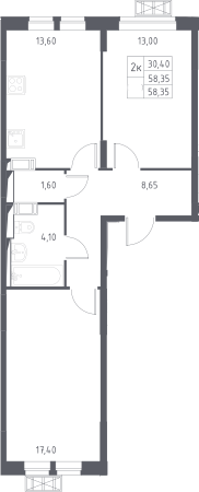 2-комнатная квартира № 46, 58.35 м2 с отделкой 5 эт.