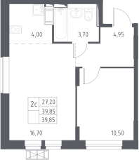 2-комнатная квартира № 285, 39.85 м2 с отделкой 11 эт.