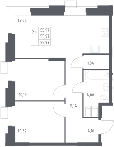 3-комнатная квартира № 429, 55.97 м2 с отделкой 9 эт.
