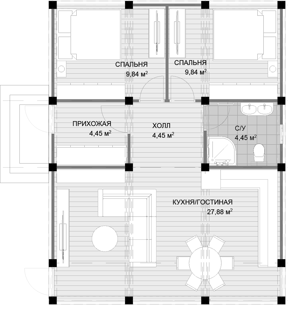 Студия № 105, 60.00 м2 с отделкой 1 эт.
