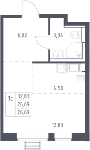 Студия № 119, 26.69 м2 с отделкой 12 эт.