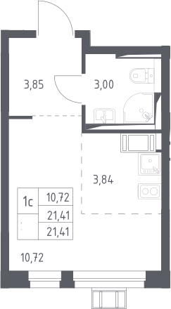 Студия № 49, 21.41 м2 с отделкой 11 эт.