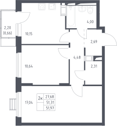 2-комнатная квартира № 87, 51.31 м2 с отделкой 4 эт.
