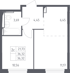 2-комнатная квартира № 290, 36.32 м2 с отделкой 12 эт.