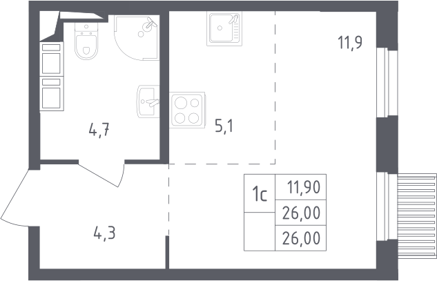 Студия № 199, 26.00 м2 с отделкой 6 эт.