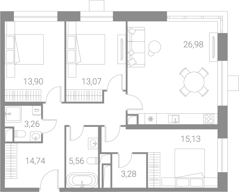 4-комнатная квартира № 37, 95.92 м2 с отделкой 7 эт.