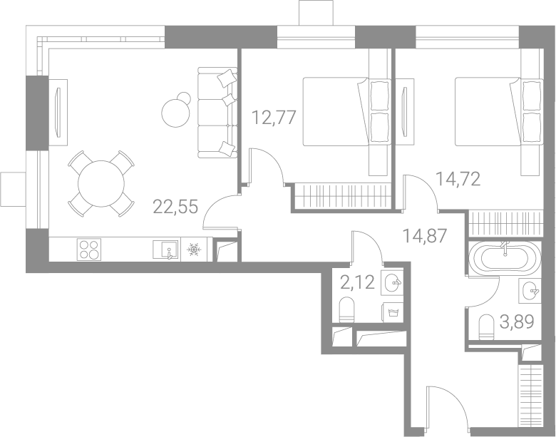 3-комнатная квартира № 27, 70.92 м2 с отделкой 5 эт.
