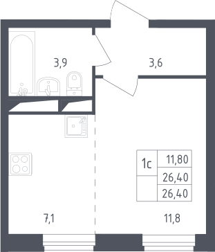 Студия № 321, 26.40 м2 с отделкой 2 эт.