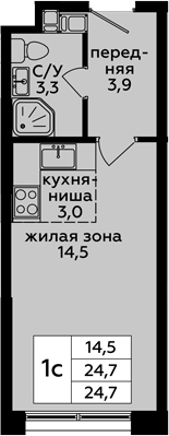 Студия № 321, 24.70 м2 без отделки 14 эт.