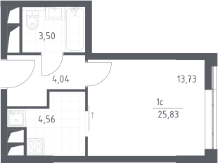 Студия № 31, 25.83 м2 с отделкой 3 эт.