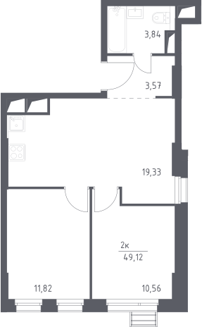 3-комнатная квартира № 302, 49.12 м2 с отделкой 17 эт.