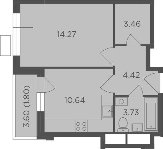 1-комнатная квартира № 248, 36.52 м2 без отделки 5 эт.