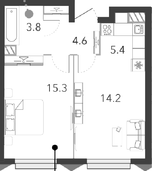 2-комнатная квартира № 1176, 43.30 м2 без отделки 6 эт.