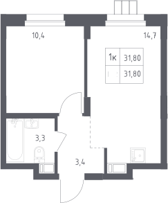 1-комнатная квартира № 256, 31.80 м2 с отделкой 4 эт.