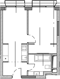1-комнатная квартира № 224, 38.18 м2 без отделки 20 эт.